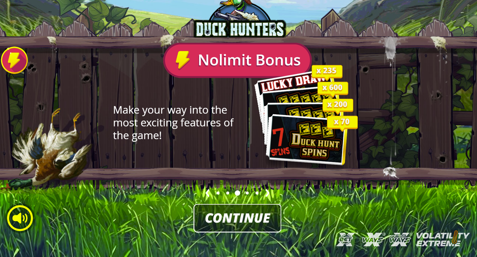 The graphics are colourful and playful, complemented by lively sound effects that mimic classic duck-hunting games. Volatility is moderate, making it suitable for a wide range of players who enjoy both casual play and occasional big wins. The arcade theme adds an engaging twist to standard slot gameplay.