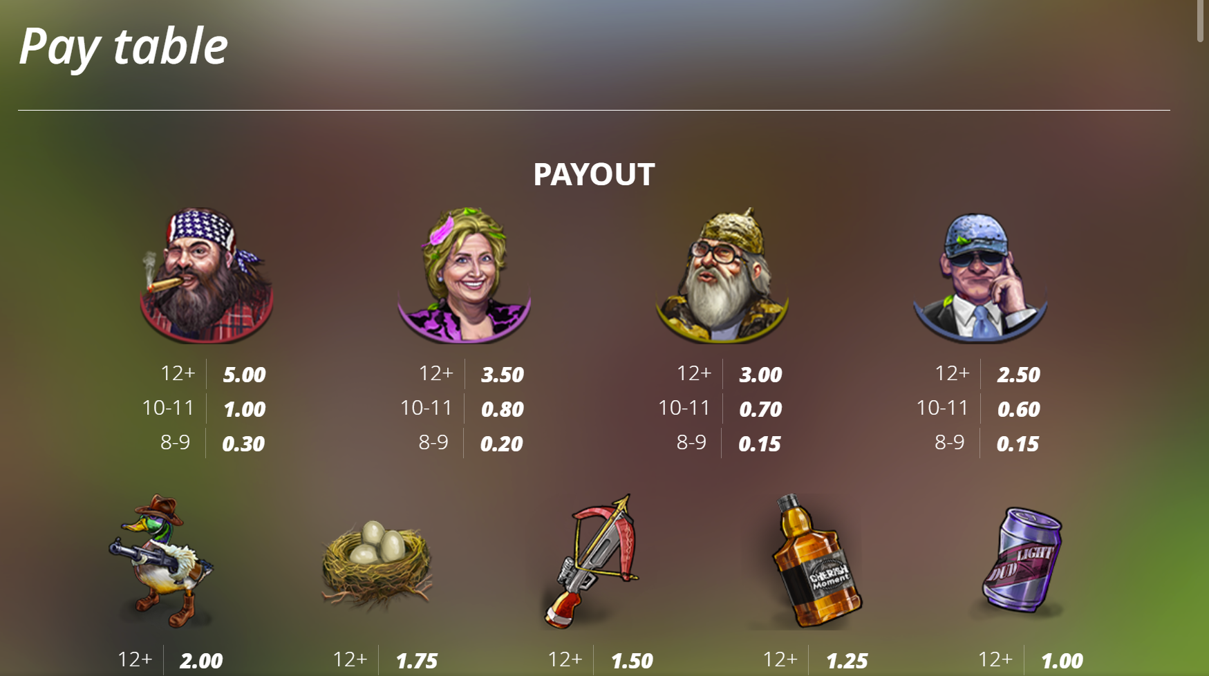 Symbols and Paytable